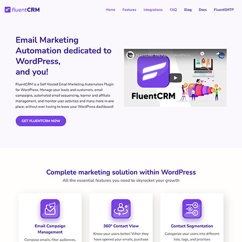 FluentCRM هو مكون إضافي لأتمتة التسويق عبر البريد الإلكتروني مستضاف ذاتيًا لبرنامج WordPress. قم بإدارة توقعاتك وعملائك ، ونشاط البريد الإلكتروني ، وفرز البريد الإلكتروني تلقائيًا ، ووضع علامات على القنوات ، وإدارة المتعلمين والأعضاء ، ومراقبة نشاط المستخدم في مكان واحد. لا حاجة لمغادرة لوحة تحكم WordPress.